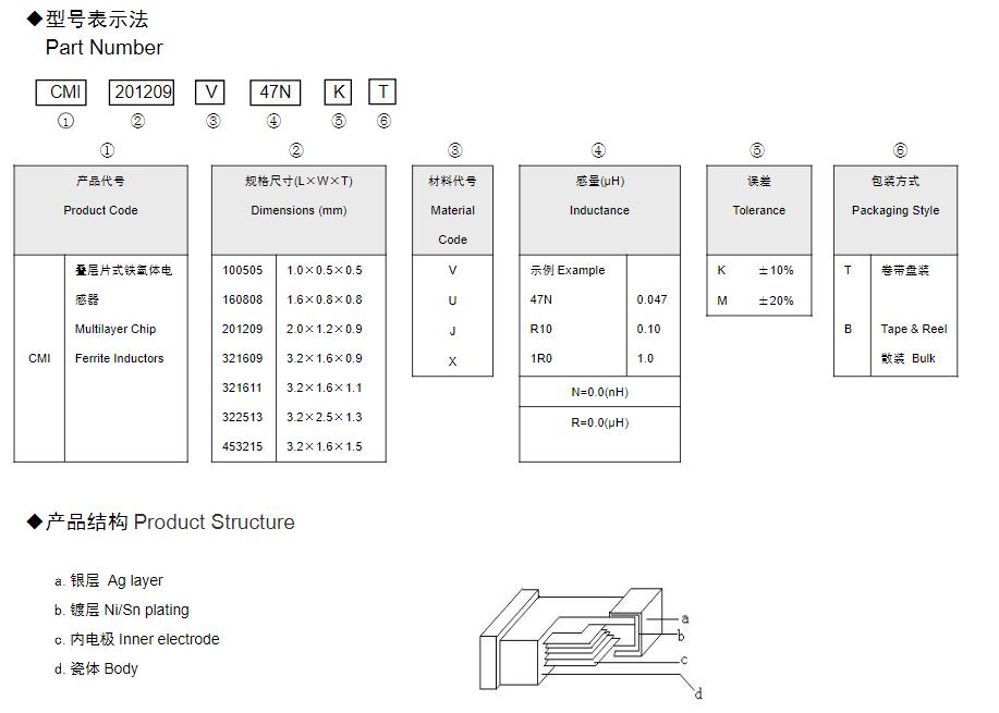 風(fēng)華高科疊層片式鐵氧體電感器命名規(guī)則: