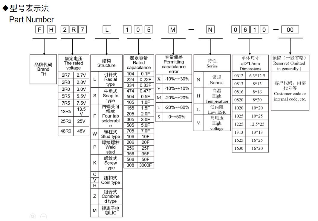 風(fēng)華高科圓柱型超級(jí)電容器型號(hào)命名規(guī)則: