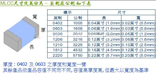 MLCC尺寸大小定義