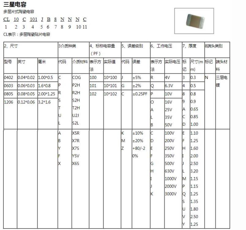 三星(SAMSUNG)貼片電容-最近很多人電子采購員在采購三星貼片電容,不知道三星貼片電容規(guī)格型號,參數(shù)怎么表示方法:今天超翔電子小編整理了三星貼片電容規(guī)格對照表供大家參考:希望對您有所幫助。如需要采購三星貼片電容,請聯(lián)系超翔電子銷售業(yè)務員,我們會跟據(jù)您的需求進行合理的報價,讓你買的開心用的放心!