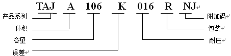 第一部分TAJ:AVX貼片鉭電容的系列號,TAJ系列鉭電容中文俗稱標(biāo)準(zhǔn)品系列,AVX鉭電容共有TAJ,TPS,TPM,TAP,TBC等系列。