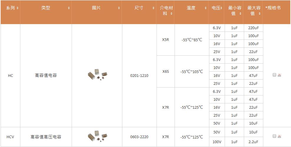 產(chǎn)品系列:國(guó)巨高容值貼片電容HC/HCV系列