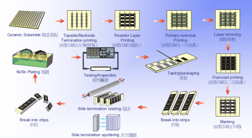 目前厚膜貼片電阻器生產量使用量占絕大部分。