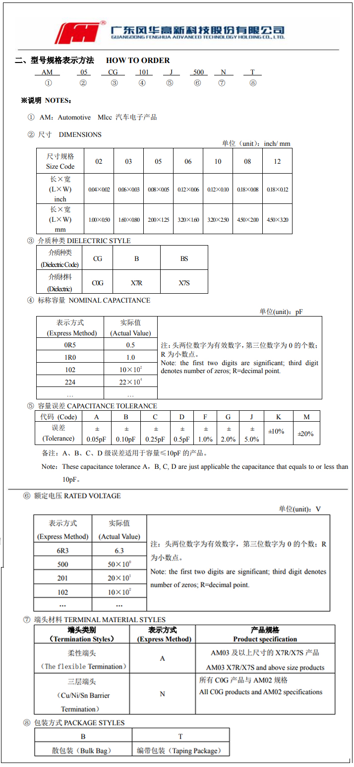 風華車規(guī)電容命名規(guī)則對照表