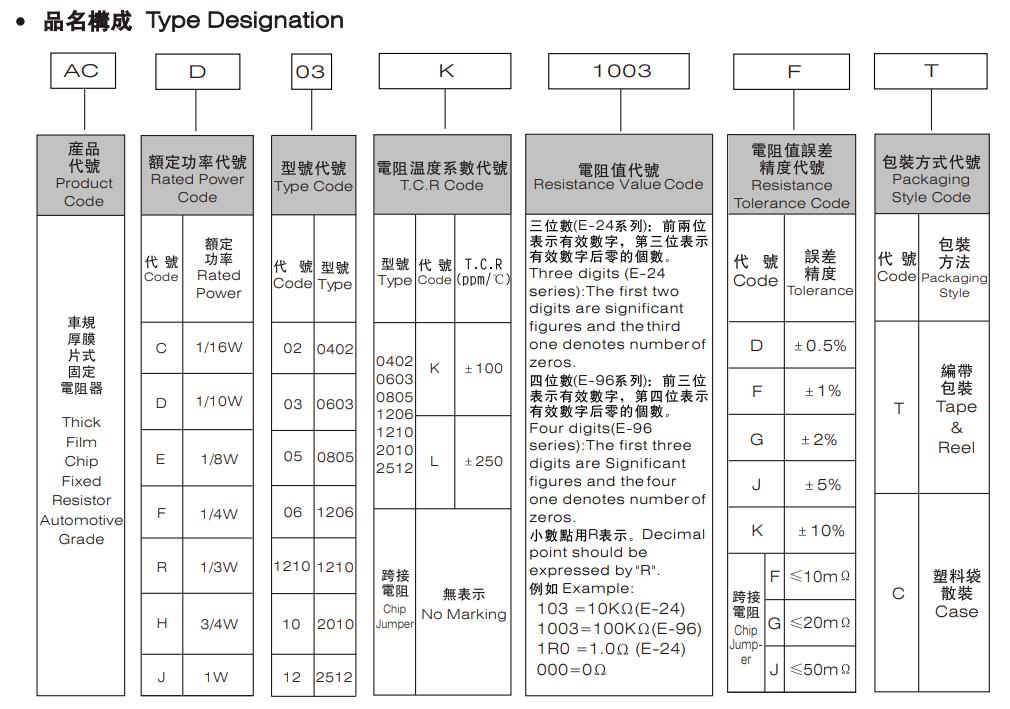 風華車規(guī)電阻命名規(guī)則對照表