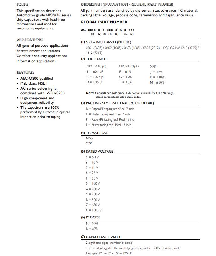 YAGEO國巨貼片車規(guī)電容命名規(guī)則對照表