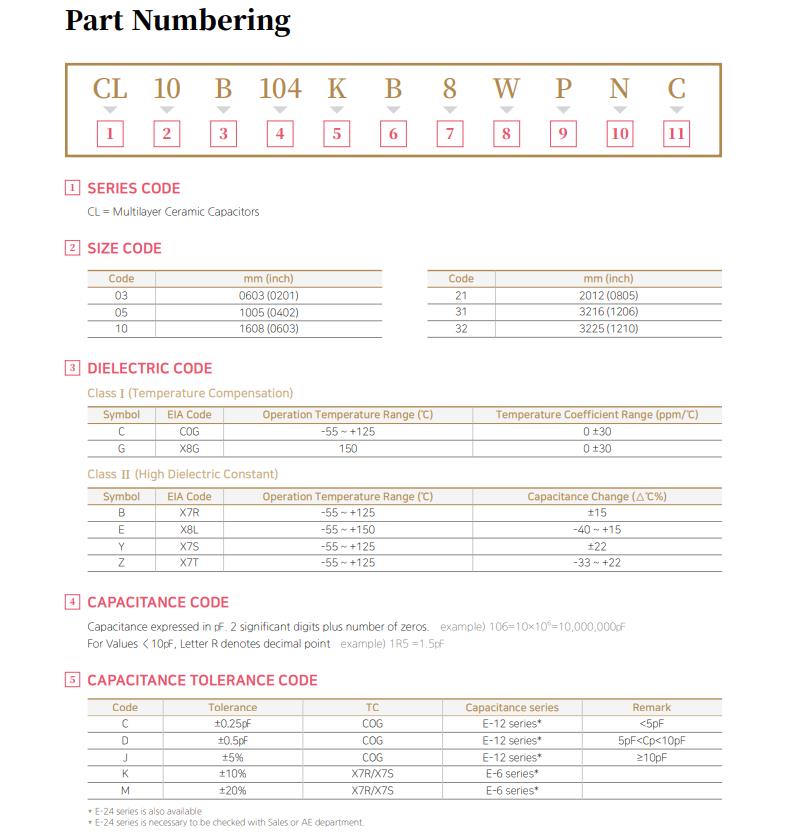 三星貼片車規(guī)電容料號命名規(guī)則對照表