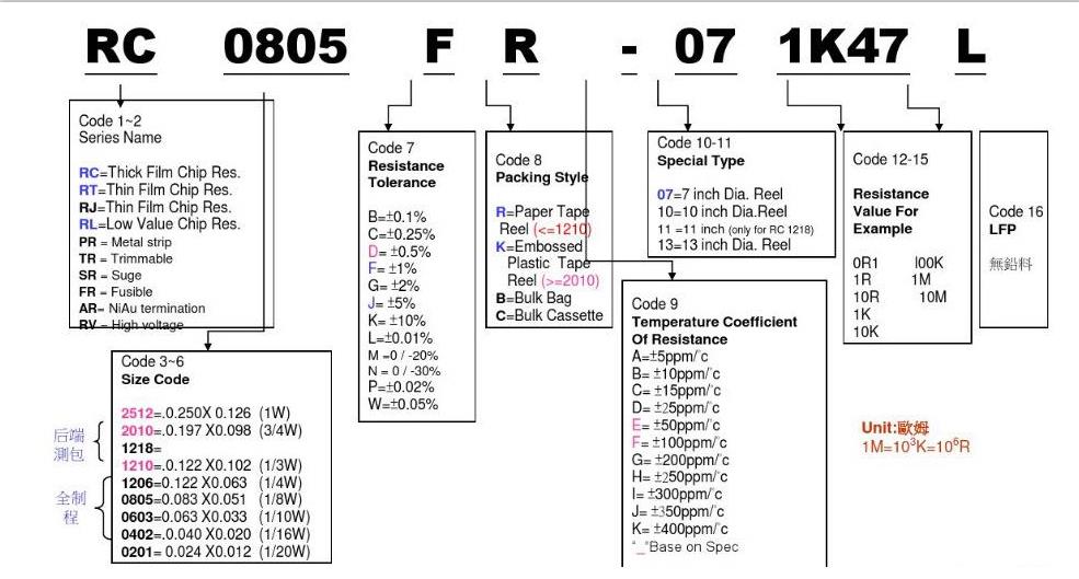 YAGEO國巨貼片電阻命名規則,現在很多采購貼片電容電阻,都需要一張對照表,每個廠家生產都有自己品牌的命名規則。國巨也是電子元器件知名品牌之一,超翔電子專業銷售國巨電容,國巨電阻等國巨全系列產品。歡迎咨詢合作!下面給大家介紹下國巨貼片電阻命名規則對照表,供大家參考!希望對您有所幫助!國巨貼片電阻命名規則對照表: