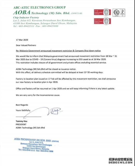 疫情影響!馬來西亞停工14天,電感、電阻再受影